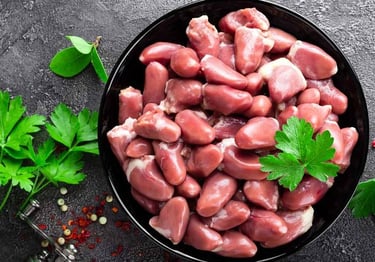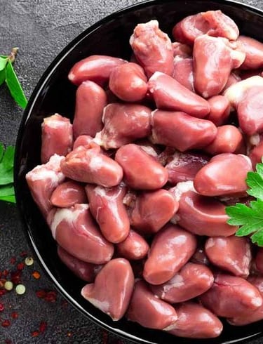 صدور، أفخاذ، كبدة، وقوانص جاهزة للطهي بسهولة.